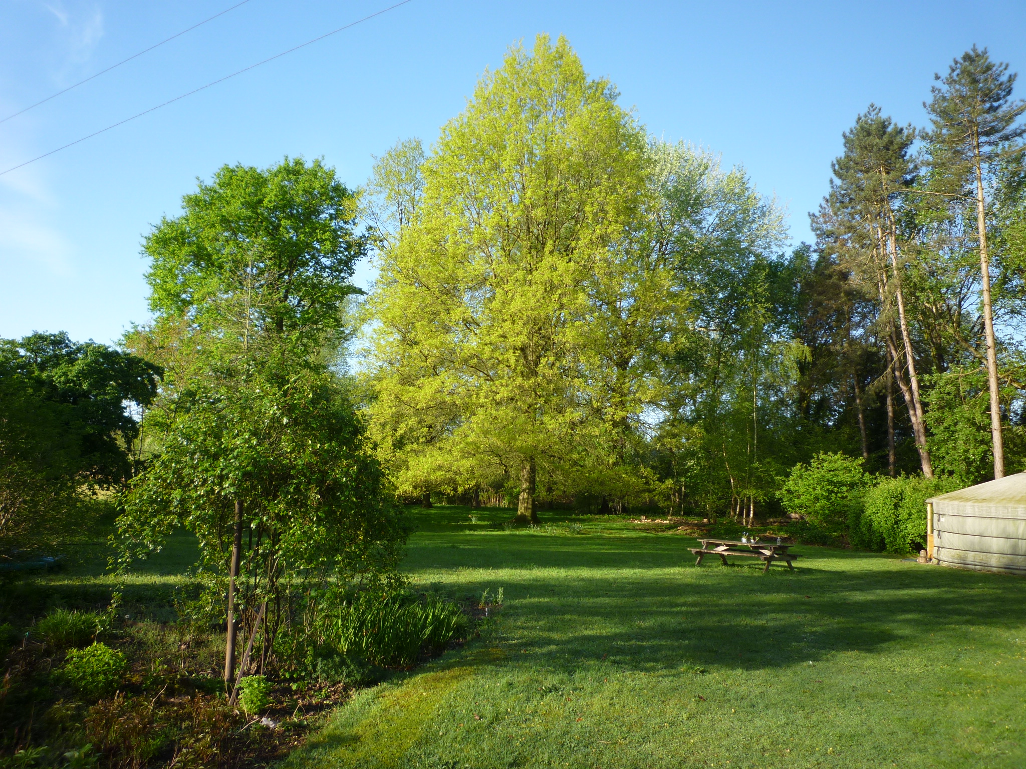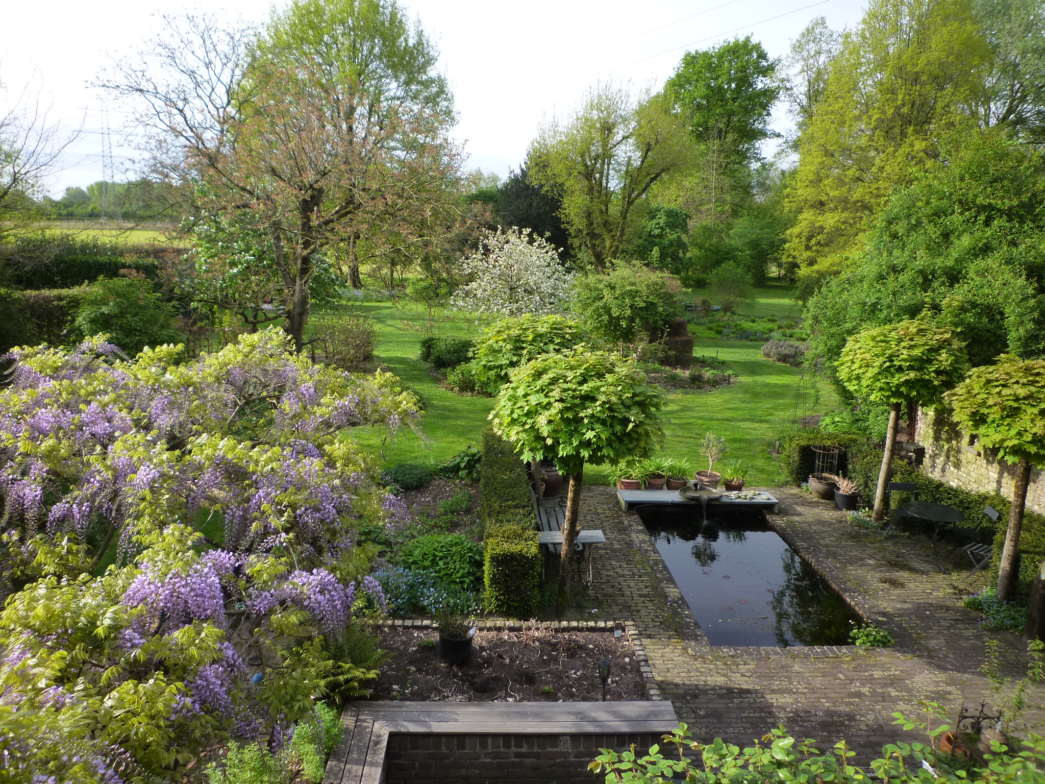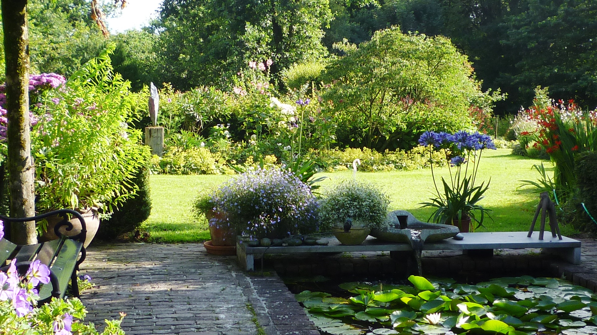 Toen wij hier 50 jaar geleden kwamen wonen lag achter de boerderij een stuk grasland van 8.600 m2, kaal en vlak. We keken zo uit op de flats in Helmond Noord. Wij zijn toen, naast verbouwingen, ook meteen begonnen met beplanten. Een singel met 2000 struikjes, boompjes. Hetgeen uiteindelijk is geworden wat het nu is. Een combinatie van bloemperken, struiken en grote bomen en toch ook nog veel gras met in het midden een prachtige Moeraseik. In de tuin staat ook nog een yurt. Het is geen postzegeltuintje en daardoor nogal bewerkelijk, dus hier en daar kan best nog wel een onkruidje groeien.